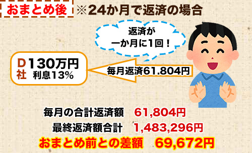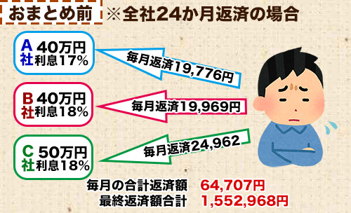 おまとめを利用して毎月の返済額を3万円に減らした場合、