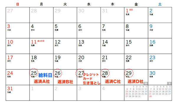 返済スケジュールが下の画像のようになりがちですが、