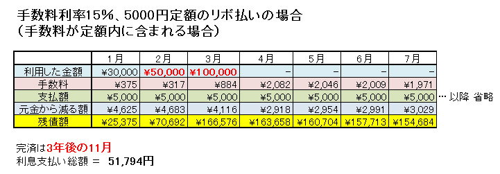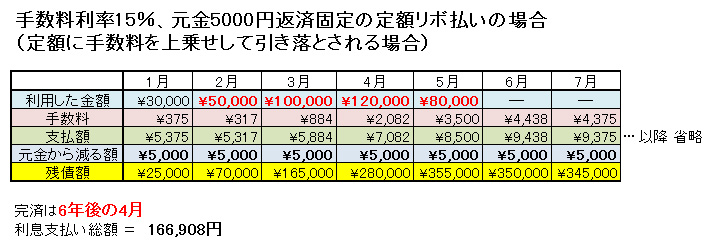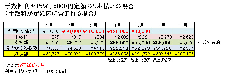 定額方式のリボで、手数料込みで5000円が引き落とされる形式だった場合、