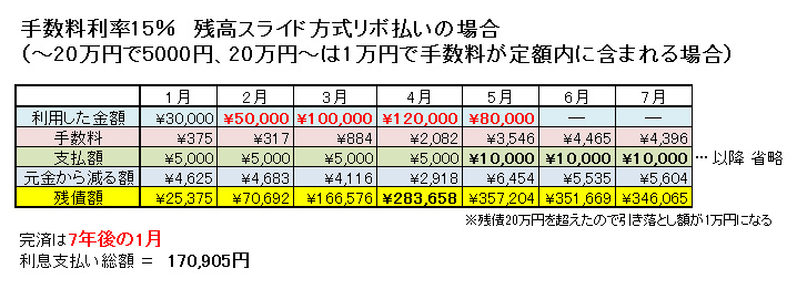 ちなみに、残高スライド方式と呼ばれる仕組みのリボであれば、