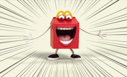 新マスコットの「ハッピー」は赤い四角形の顔をしたキャラクターで、大きく開けた口から白い歯がのぞく。マクドナルドがツイッターに写真を掲載し、「新しい友達をよろしく!」と紹介した。